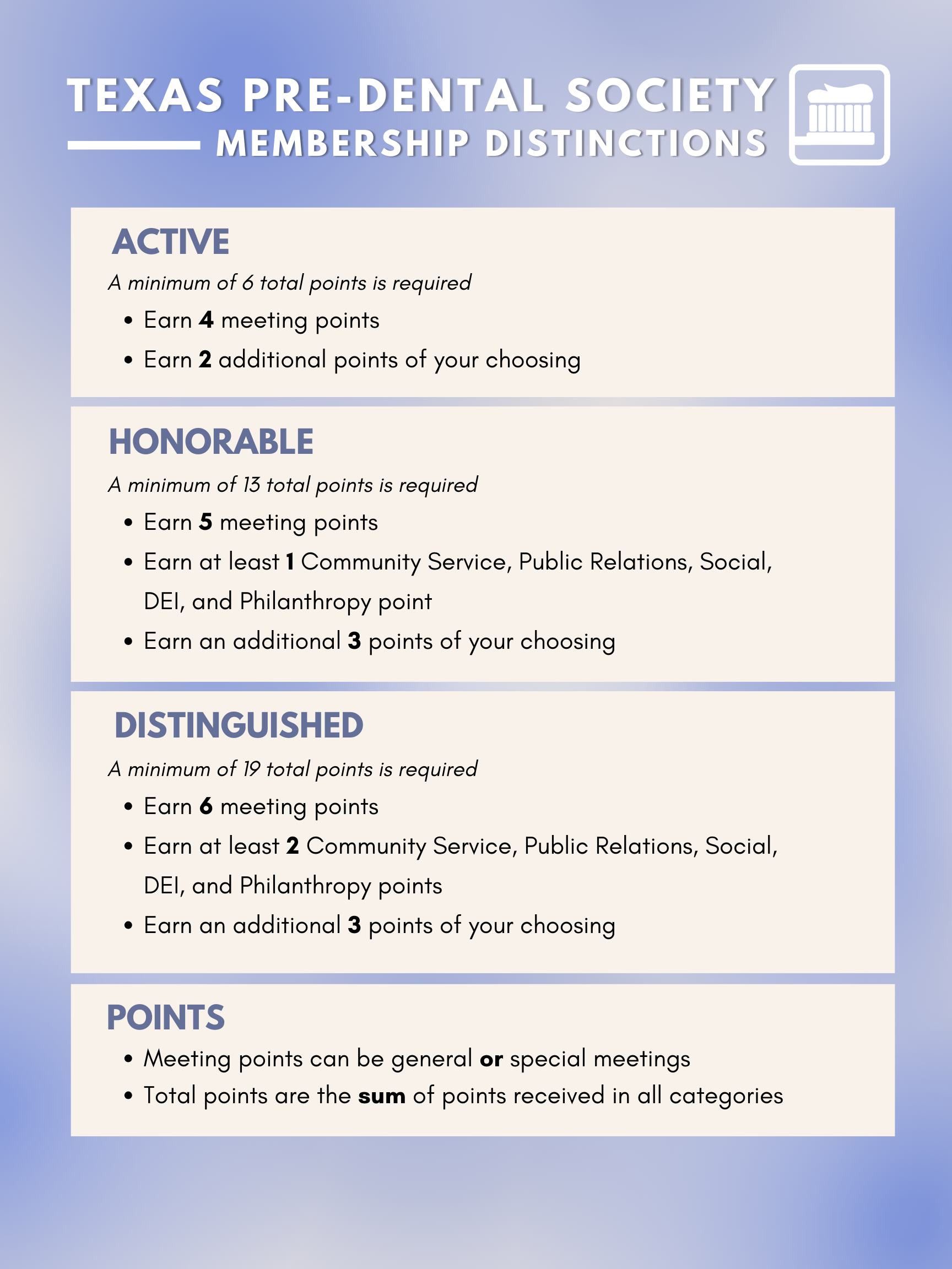 After each meeting, we post all of our slides onto the website in the Members Portal page. You will be able to check all of our upcoming events and still become an active, honorable, or distinguished member. Additionally, special meetings that are held on alternative days and flex points can count as a meeting point.